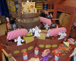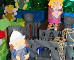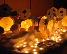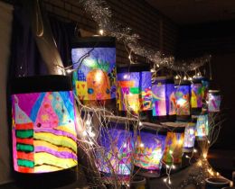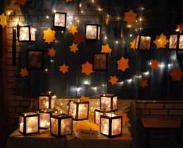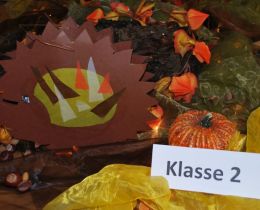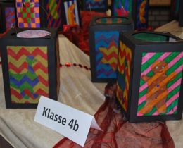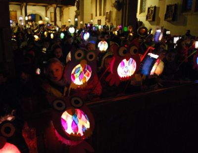 Vor dem Martinszug trafen wir uns in der katholischen Kirche St. Jakobus und sangen gemeinsam Martinslieder. Alle Laternen leuchteten wunderschön in der dunklen Kirche.