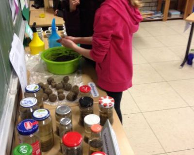 Viele verschiedene Erdproben wurden untersucht und kleine Lebewesen darin bestimmt. Was brauchen Pflanzen zum Leben? Auch das wurde in dieser Woche in Versuchen erkannt. Im Regenwurm-Terrarium konnte man den fleißigen Regenwürmern bei ihrer wichtigen Arbeit zuschauen und aus den selbstgefertigten Samenkugeln wuchsen schon bald erste Pflänzchen.