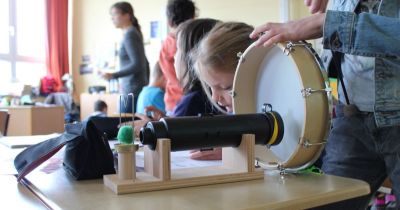 Was ist Schall und wie verteilt er sich in der Luft? Wie geht er duch feste Gegenstände und warum hören wir dennoch etwas? Darauf und auf viele Fragen mehr fanden die Kinder Antworten und konnten sie auch in einem Workshop im Odysseum weiter erforschen. Mit einer selbstgebastelten Gitarre konnten die Kinder Töne erzeugen und den Wert eines Resonanzkörpers erkennen. Gemeinsam wurde ein Hörspiel aufgenommen und sich als 'Geräuschemacher' erprobt.