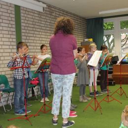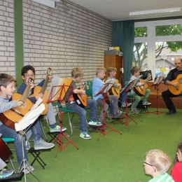 Danach präsentierte wieder einmal die Musikschule, was in den einzelnen Gruppen im Laufe des Schuljahres gelernt wurde. Die Musikklasse aus dem 1. Schuljahr führte mit viel Engagement 'Die Schnecke Mathilda' vor. Die Querflöten- und Blockflötenkinder aus dem 2.,3. und 4. Schuljahr zeigten, dass sie im vergangenen Jahr fleißig geübt und viel gelernt haben. Schließlich folgten noch unsere inzwischen auf 7 Kinder angewachsene Gitarrengruppe des 2. Schuljahres und ein Gitarren-Trio aus dem 3. Schuljahr. Es ist wirklich erstaunlich, wie gut das Zusammenspiel nach dieser kurzen Zeit schon klappte!