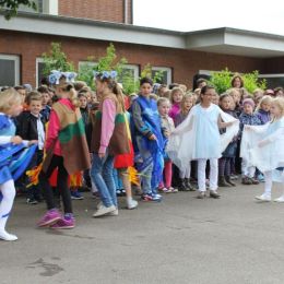 Zu Beginn wurde aber erst einmal mit Liedern auf das Thema eingestimmt. Dazu gab es eine passende Choreografie in Kostümen, die die 4 Elemente verdeutlichten.