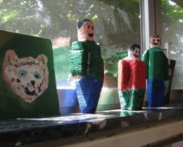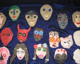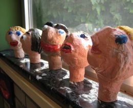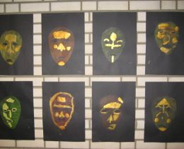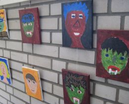 Köpfe aus Pappmaché, Masken aus Gips, Köpfe und Figuren aus Ytong-Steinen, Portraitmalerei, Umrisse, Lippen und noch viele andere Darstellungsformen mehr sorgten für ein umfassendes Bild und die Anwendung vieler verschiedener Techniken. Die Ergebnisse sind toll und die Ausstellung in unserem Flur sorgt für große Begeisterung!