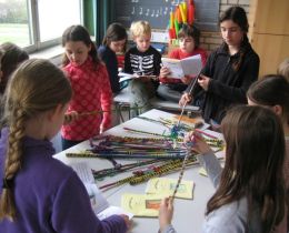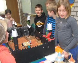 Die Kinder der Klasse 4 hatten sich eine Gespenstergeschichte ausgesucht: ‚Appetit auf Blutorangen‘ hat das Gespenst Gregor eigentlich immer. Sie bastelten große Burgen, in denen auch der Schatz und der Brunnen nicht fehlten. Hier konnte sich Gregor so richtig wohlfühlen. Eine besonders witzige Textstelle aus dem Buch lasen die Kinder mit verteilten Rollen vor und es war für alle lustig zu hören, wie das Gespenst Gregor den unverschämten Markus veräppelte.
