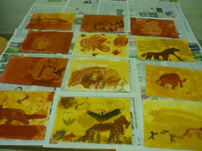 In dieser letzten sonnigen Ferienwoche reisten wir in der Zeit um einige tausend Jahre zurück. Wir besuchten das Neandertal -Museum in Mettmann. Dort konnten wir in zwei verschiedenen Workshops ein Öllicht aus Ton formen, erfahren, wie die Steinzeitmenschen Feuer machten, Jagdwaffen ausprobieren oder mit Naturfarben malen wie die alten Künstler.