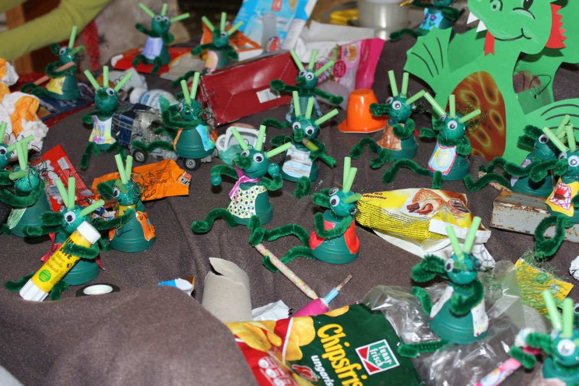 Die Olchis durften natürlich auch nicht fehlen. Die Klasse 2b las das Buch "Die stärksten Olchis der Welt" von Erhard Dietl, erzählte uns heute das Buch nach und zeigte uns eine Landschaft mit Olchis, die so war, wie man sie sich vorstellt: ein Olchi-Schlaraffenland mit großen Menge von "köstlichem" Müll.