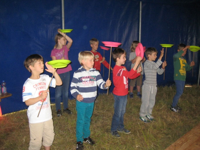 Zunächst erklärte Nicklas Lagrin allen Kindern, welche Regeln für die Woche gelten würden. Alle Kinder waren aufmerksam und gespannt. Danach wurden im Zelt alle verschiedenen Kunststücke vorgeführt und erklärt, damit sich die Kinder das richtige aussuchen konnten.
