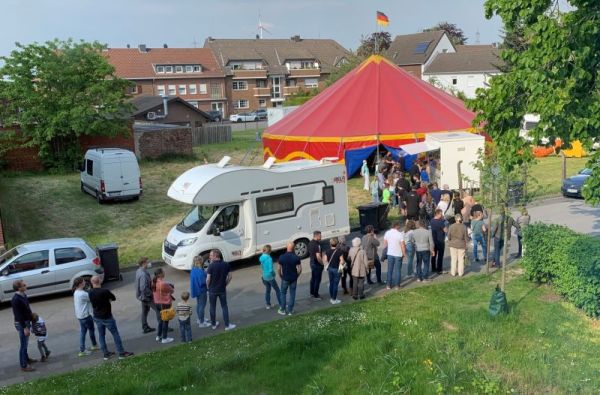 Auf dem Schulhof bauten wir eine riesige Wasserleitung auf.