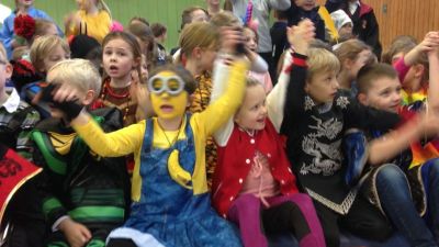 Nachdem in den ersten beiden Stunden jede Klasse im eigenen Klassenraum feierte, begann die gemeinsame Feier aller Jecken mit einer großen Polonaise durch die ganze Schule. Bei schönem Wetter konnte dann noch auf dem Schulhof getanzt und gefeiert werden und dann ging es zur großen Jakobus-Schul-Karnevals-Sitzung in die Turnhalle.