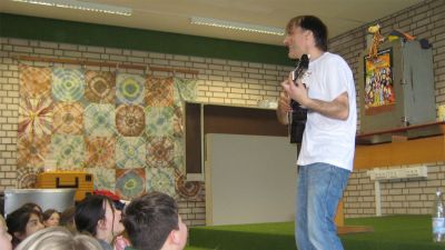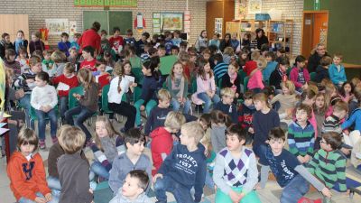 Nachdem Thommi Baake alle Kinder so richtig zum Lesen animiert hatte, wurden in jeder Klasse gemeinsam ein Buch gelesen und dazu eine Menge Aktionen veranstaltet. Am 12.3. fanden sich dann alle Kinder zur Präsentation in der Aula ein, um zu hören und zu sehen, was die anderen Klassen gemacht hatten und ihr eigenes Projekt zu präsentieren.